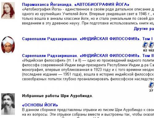 На сайте можно найти массу полезной информации по направлениям: Хатха Йога, Крия Йога, Гьяна Йога, Карма Йога, Раджа Йога, Бхакти Йога, Тантра Йога, Бхагавад Гита, Йога для детей, Кундалини Йога, Йога против стресса